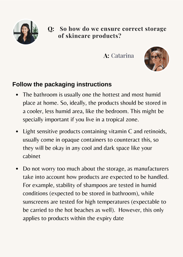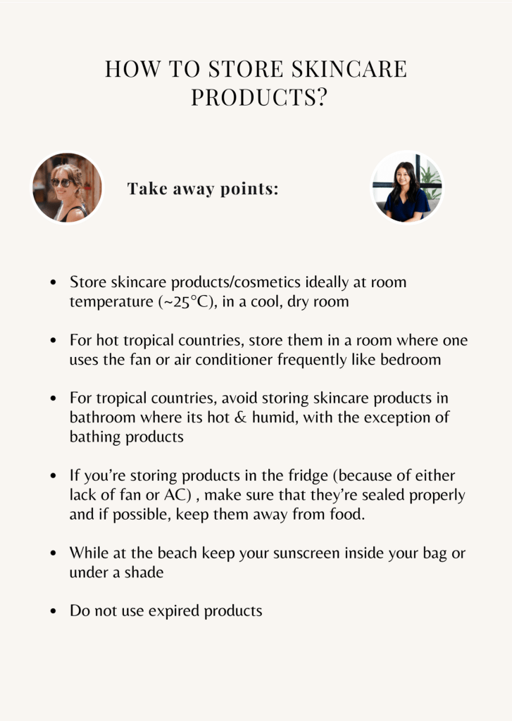 I got a few questions on how to store skincare products when one is living in a hot tropical country with summers of >35°C and when instructions on product labels read “store below 25°C or store sunscreen below 30°C?