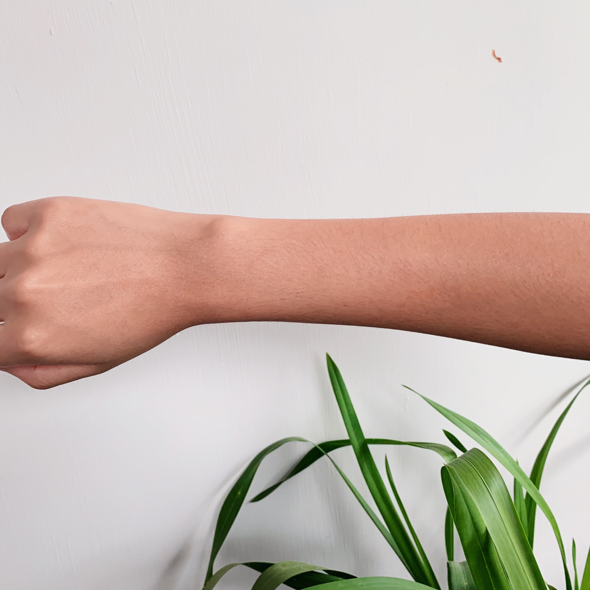 The white cast blends with the skin in 30-40 secs of gentle rubbing.