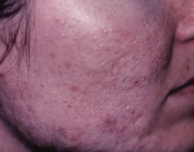 Acne scars after medium depth chemical peel. Image : Rooks textbook of dermatology